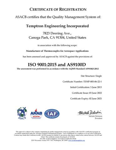 Welcome to Temptron Engineering High Temperature Thermocouple Sensors