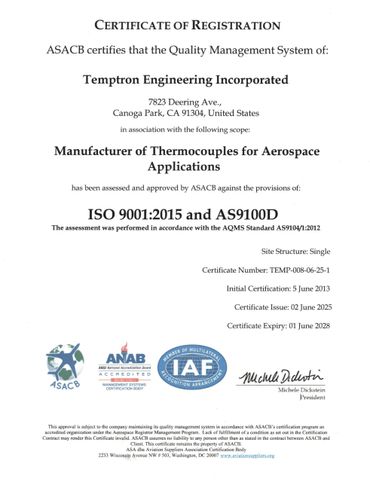 Welcome to Temptron Engineering High Temperature Thermocouple Sensors
